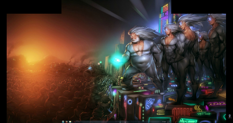 It's a Reedit image from the Video Game crowd of PCs over Console gamers. I got it from a totally different source and found the history later. The side borders are there because the height just fits. The two black boxes on the top left and right are because of the monitor layout. 4 23" Acer monitors. One in the center, one rotated 180* above it, and two rotated 90* and 270* on either side. It gives me a piece-together 4k display :)