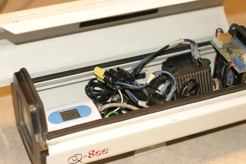 The 2nd old camera is an iGuard IP250e which is (was) touted to be the lighest and smallest IP camera on the market. The picture shows it mounted inside a Q-see outdoor enclosure. Unfortunately, the firmware of this camera is even worse than the IP501P. Many times when trying to grab an image it just returns "No image" instead of a jpeg. Additionally, it uses cookie-based authentication which makes accessing it from a script more cumbersome than basic authentication. Nevertheless, it was lying around and I used it.